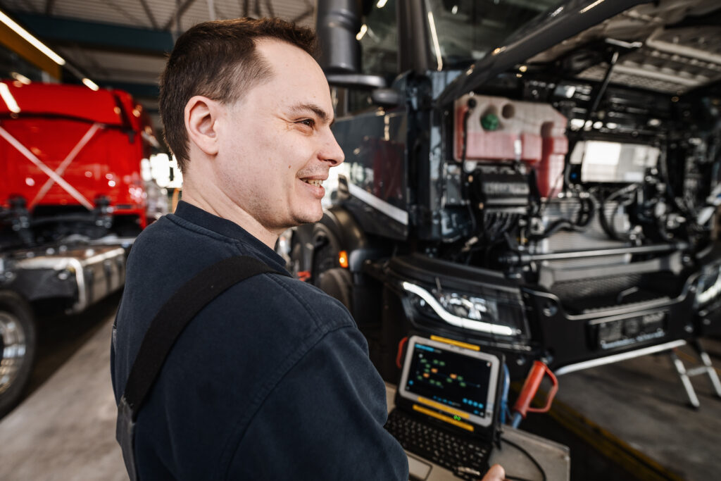 Mit unserer gut ausgestatteten Werkstatt und original Diagnosegeräten diverser Hersteller sind wir für die Aufgaben im Servicegeschäft bestens gerüstet. Neben geplanten Wartungen führen wir sämtliche Reparatur und Instandhaltungsarbeiten am Nutzfahrzeug und Trailer durch. Ob Antriebsstrang, Elektronik oder Aufbau – unsere Spezialisten geben ihr Bestes, damit der Fehler schnell gefunden und die Reparatur durchgeführt wird.
